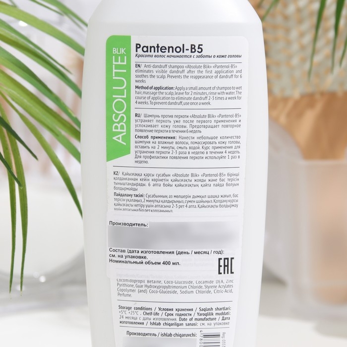 Шампунь для волос Absolute Blik против перхоти с Пантенол В5, 400 мл