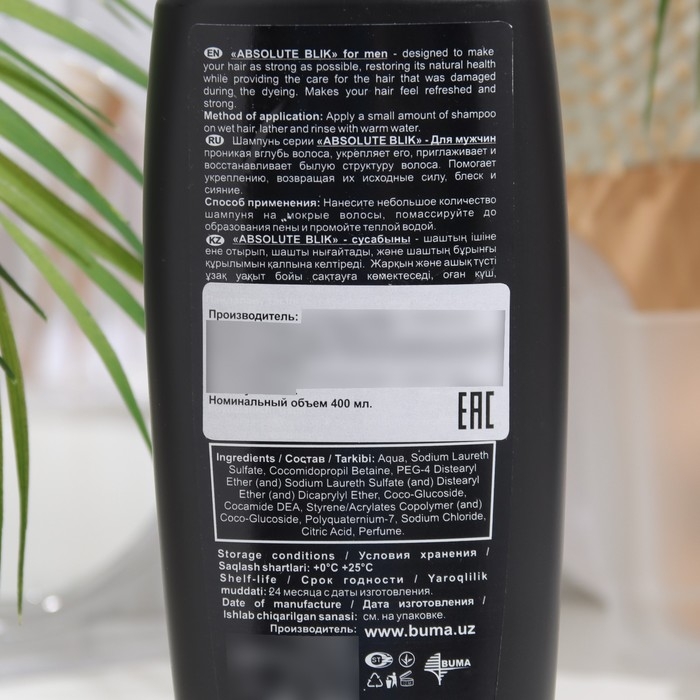 Шампунь для волос Absolute Blik мужской, 400 мл
