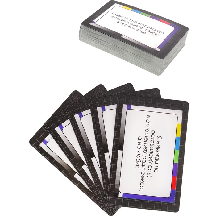 Состав игры: 55 карточек, правила игры. Количество игроков: 2+. Возраст: 18+