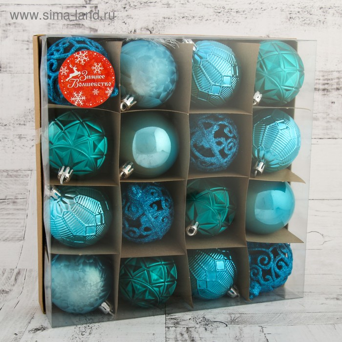 Набор шаров пластик d-6 см, 16 шт "Винтаж" голубой