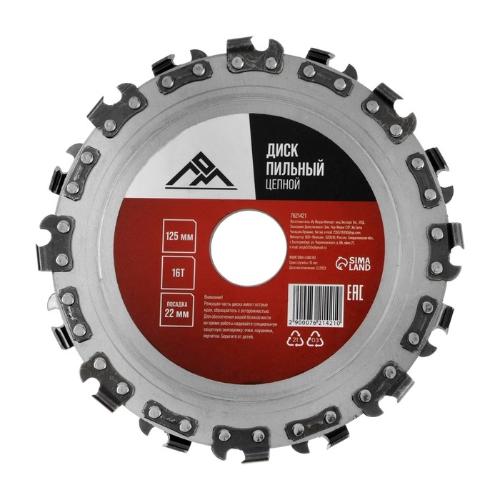 Диск пильный цепной для УШМ ЛОМ, 16Т, 125 х 22 мм