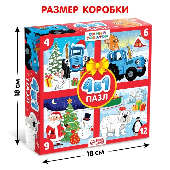 Набор пазлов 4 в 1 «Новогодние приключения Синего трактора»
