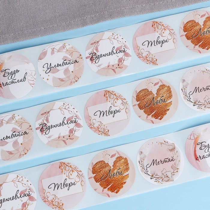 Наклейки для цветов и подарков "Будь счастлив", 4,4 х 4,4 см, набор 252 шт.