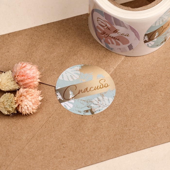 Наклейки для цветов и подарков "Благодарю", 4,4 х 4,4 см, набор 252 шт.