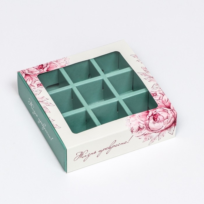 Коробка для конфет, кондитерская упаковка, 9 ячеек, «Нежность внутри», 14.7 х 14.7 х 3.5 см
