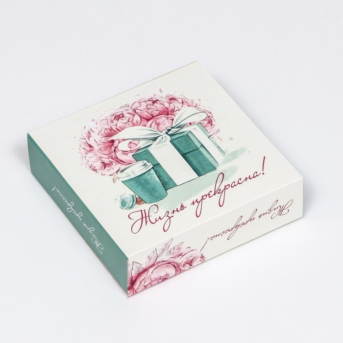Коробка под 9 конфет с обечайкой "Жизнь прекрасна Tiffani", 13,7 х 13,7 х 3,5