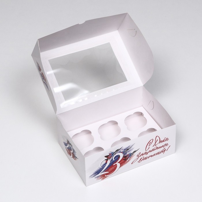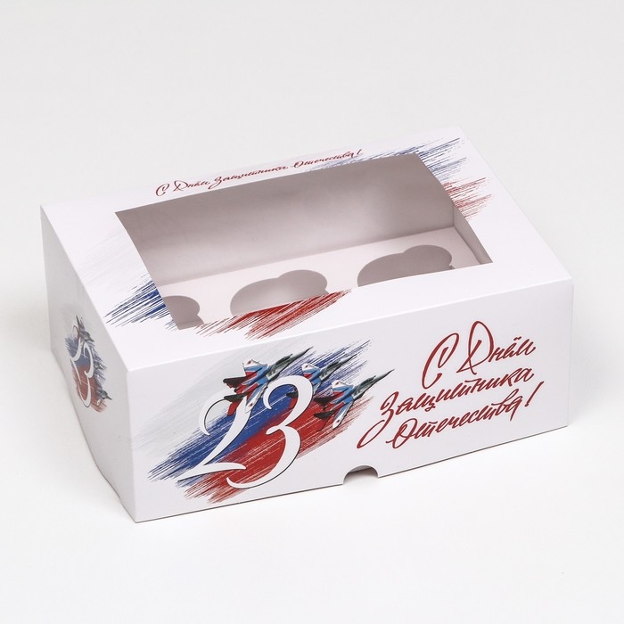 Упаковка под 6 капкейков "С Днём Защитника Отечества", 25 х 17 х 10 см