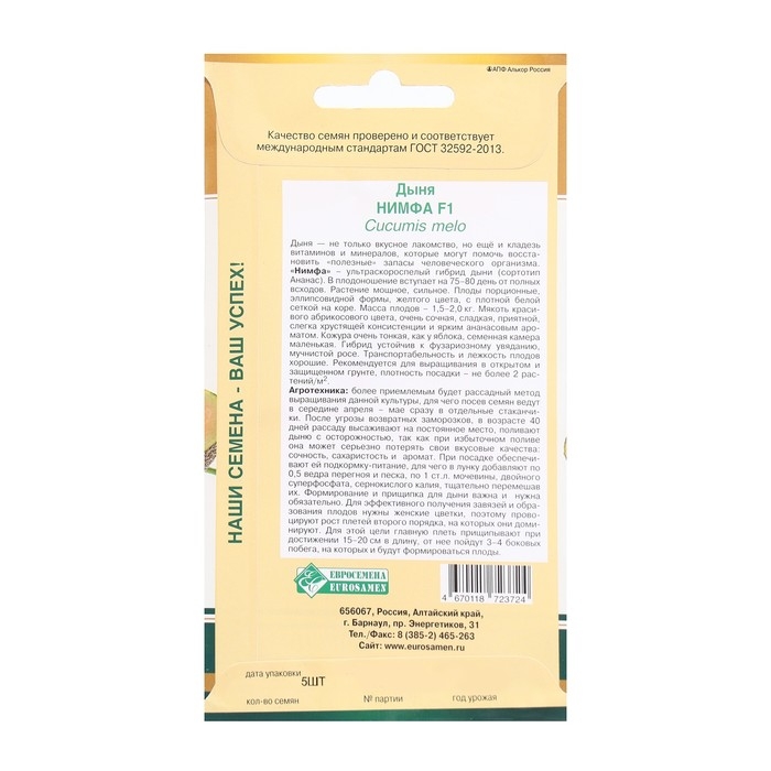Семена Дыня Нимфа F1, 5 шт