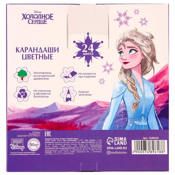 Карандаши цветные 24 цвета, Холодное сердце