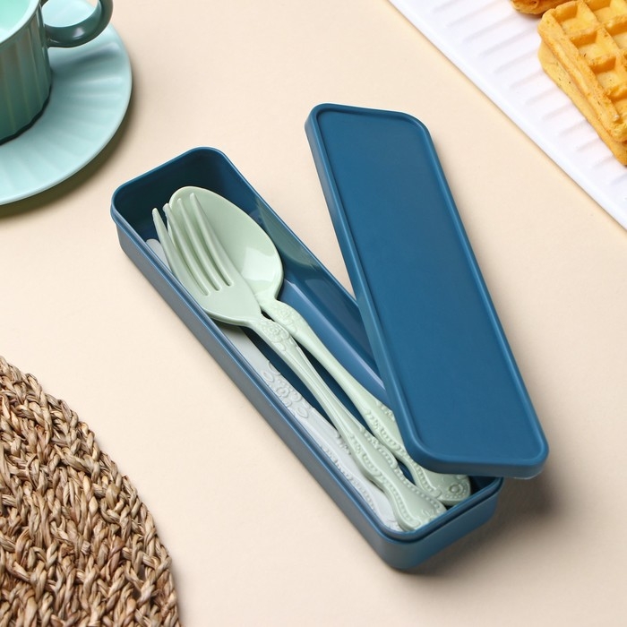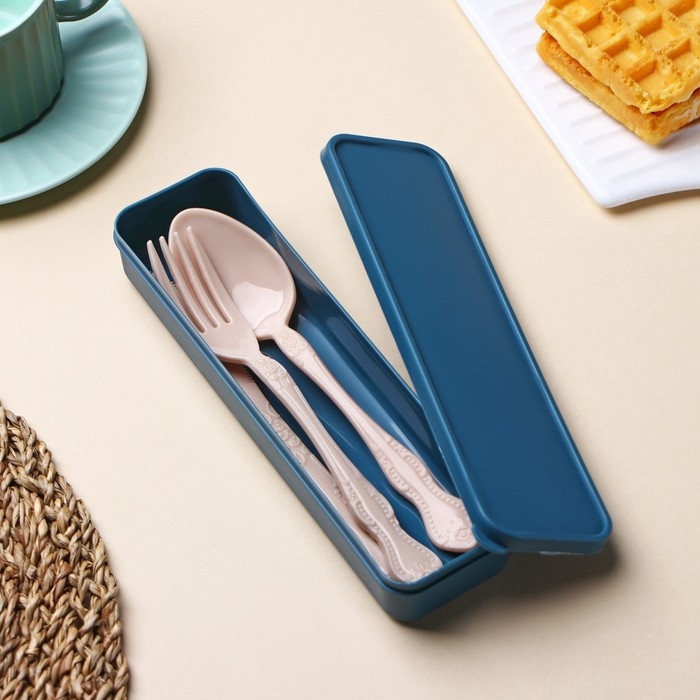 Набор столовых приборов в футляре Доляна, вилка, ложка, нож, цвет МИКС