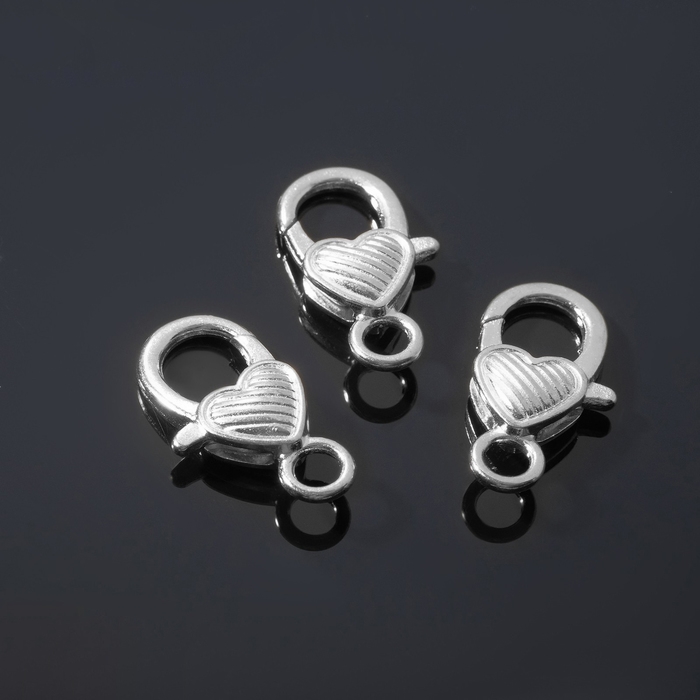 Замок-карабин «Сердечко» полосатое, (набор 3 шт.), 14×26 мм, цвет серебро
