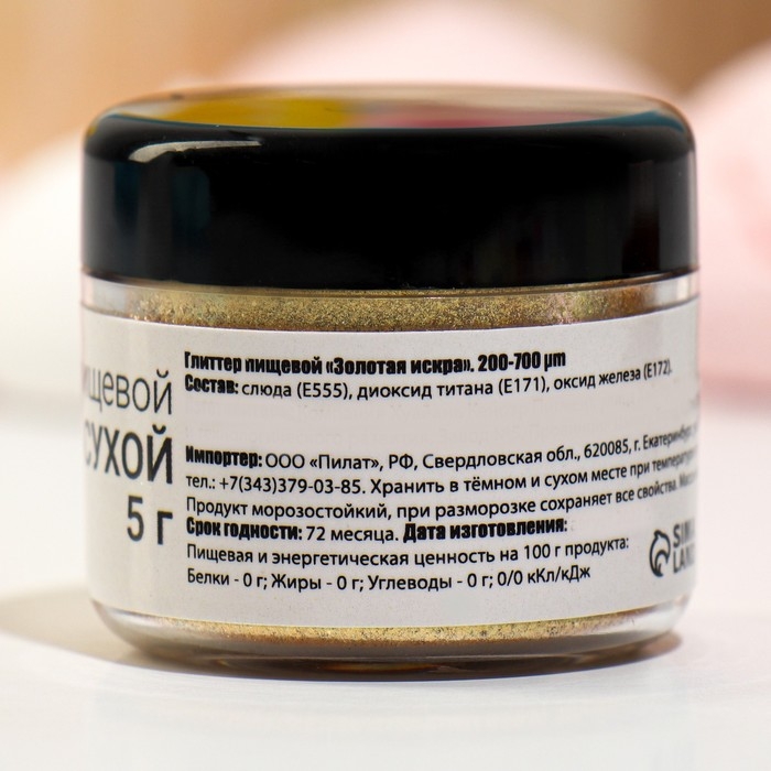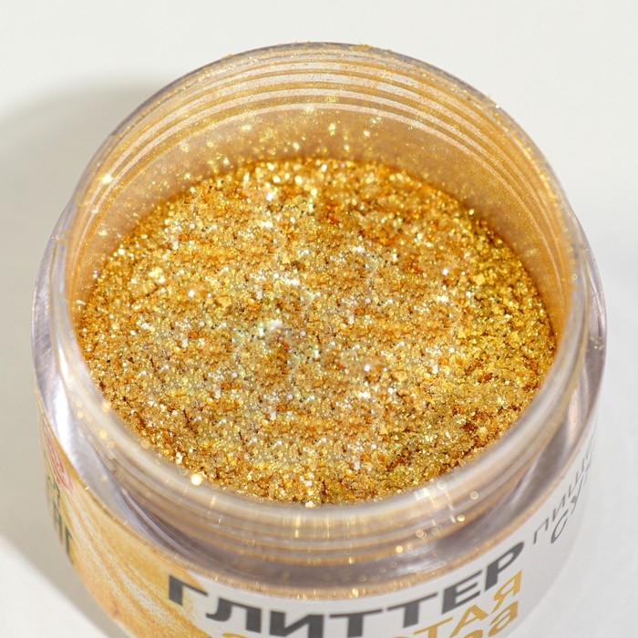 Глиттер кандурин пищевой КондиМир "Золотая искра", фракция 200-700 µm, 5 г