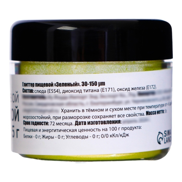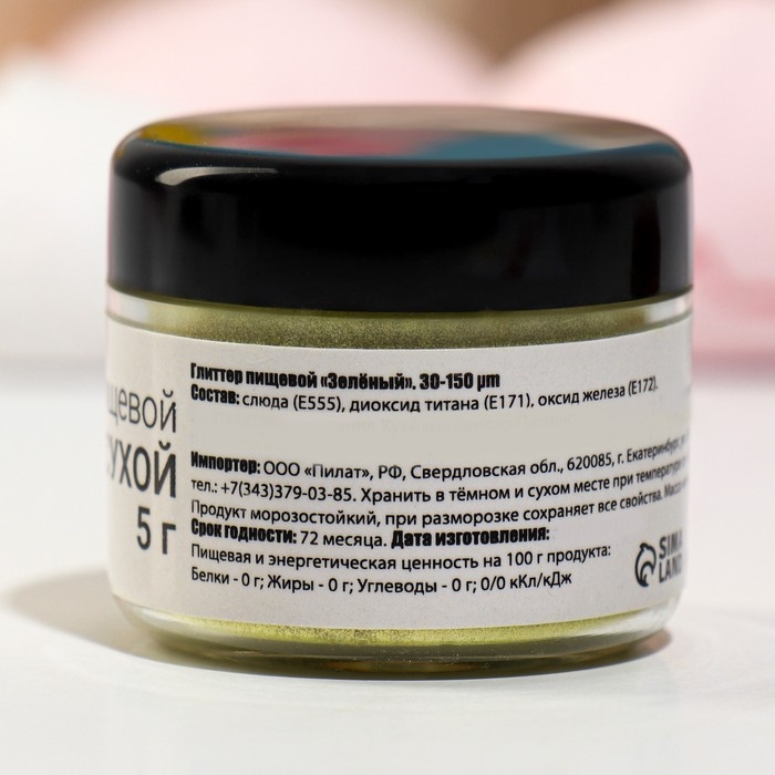 Новый год. Глиттер кандурин пищевой КондиМир "Зеленый", фракция 30-150 µm, 5 г