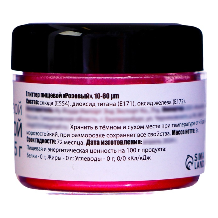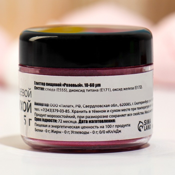 Глиттер кандурин пищевой КондиМир "Розовый", фракция 10-60 µm, 5 г