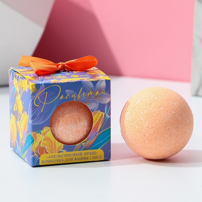 Бомбочка для ванны «Расцветай», 120 г, аромат апельсинового фреша, ЧИСТОЕ СЧАСТЬЕ
