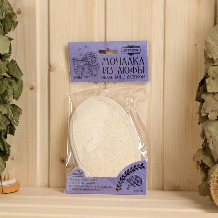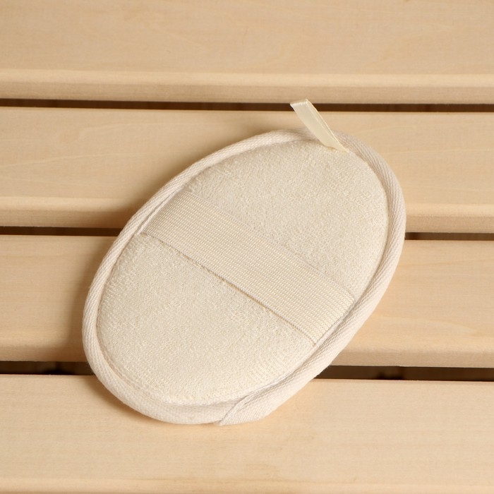 Мочалка из люфы, спонж овальный с хлопком, 16х11 см