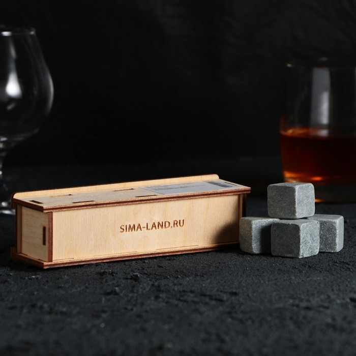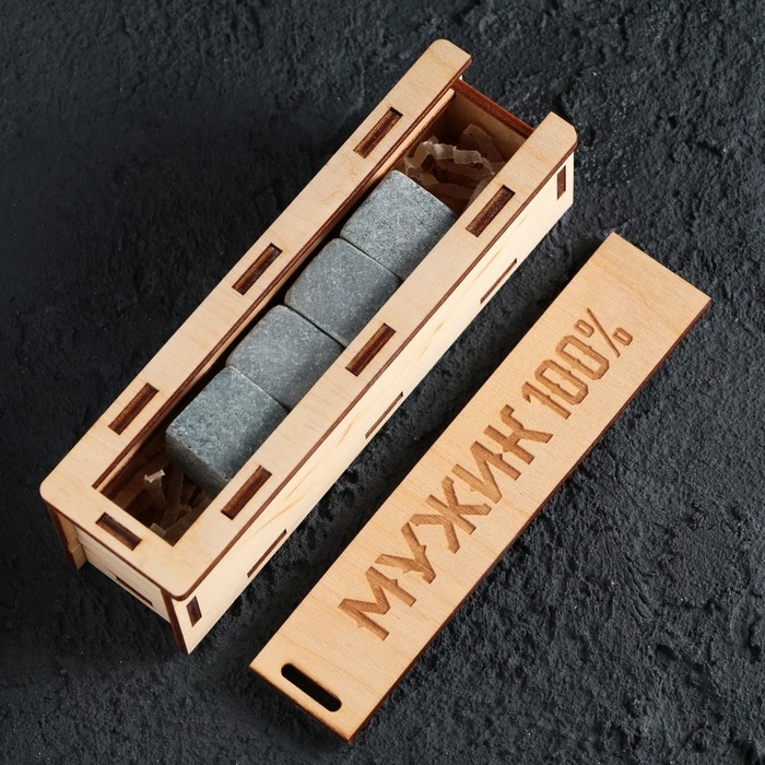 Камни для виски в деревянной шкатулке «Мужик 100%», 4 шт