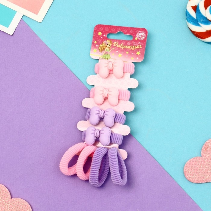 Резинка для волос "Кокетка" (набор 8 шт) бантик, розовый сиреневый