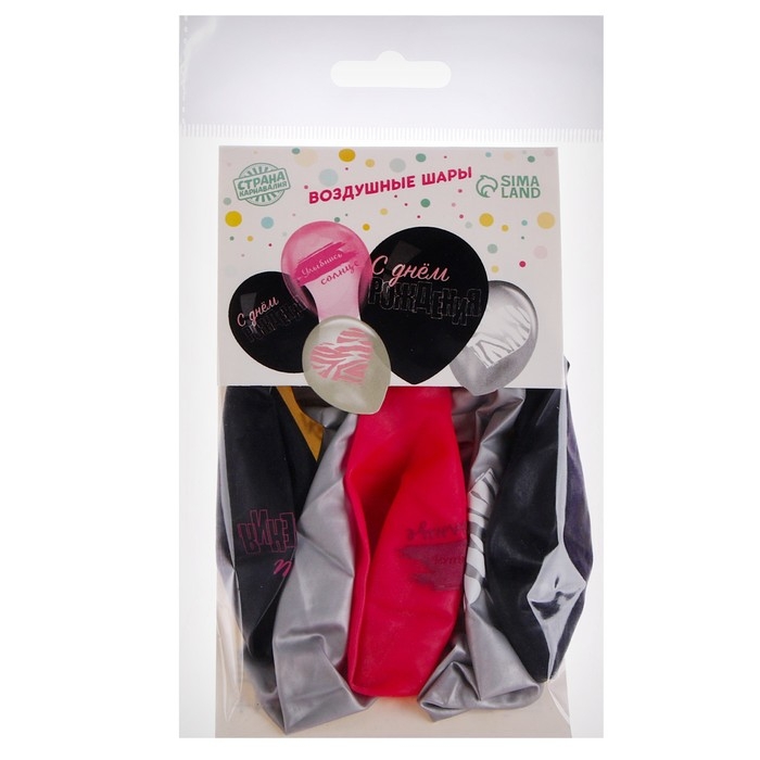 Воздушный шар латексный 12" «С Днём Рождения. Романтика», 5 шт.