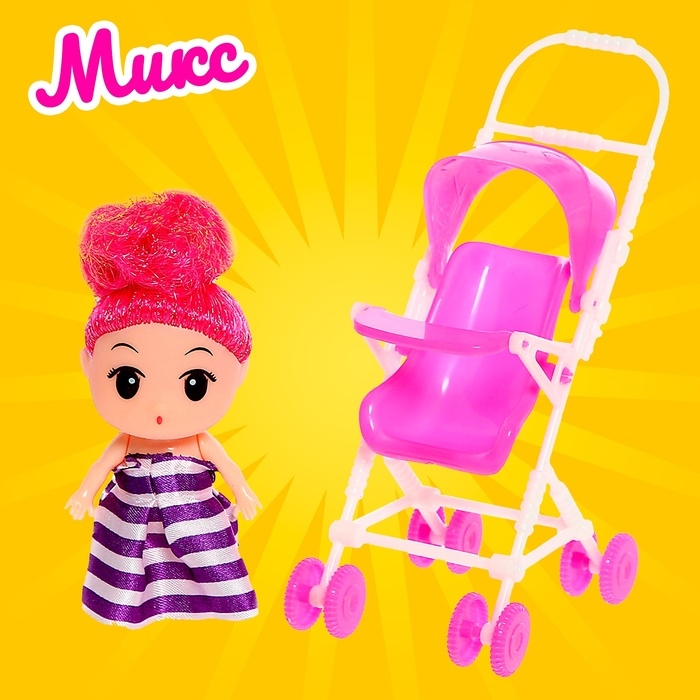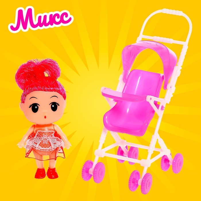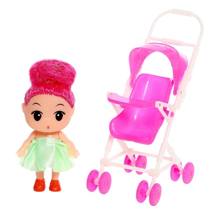- Высота коляски — 13 см. Колёсики крутятся. С ней игровые сюжеты станут ещё разнообразнее!