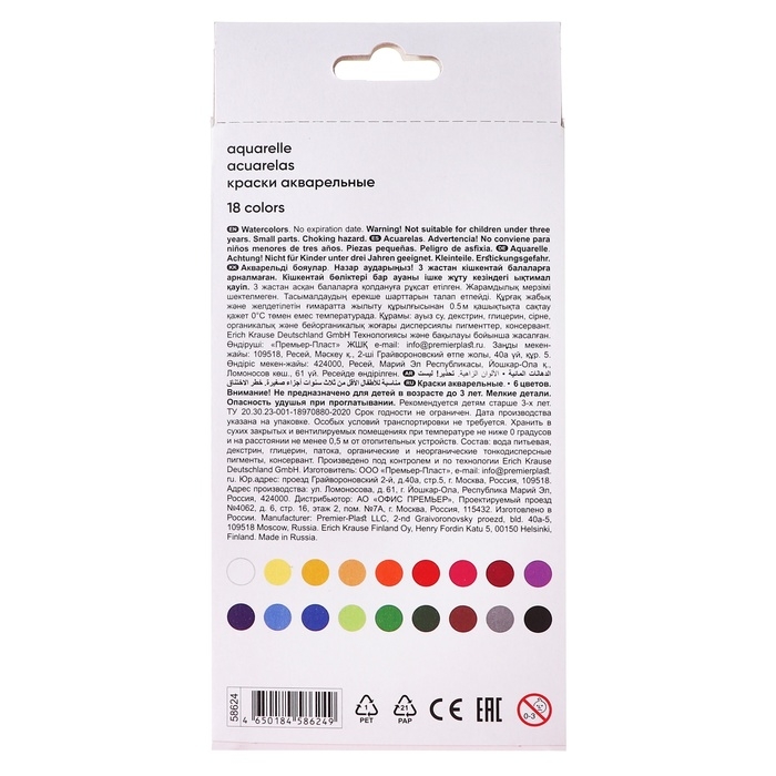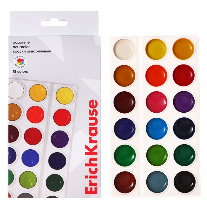 Акварель 18 цветов, ErichKrause Basic, без кисти, эконом, картонная коробка с европодвесом