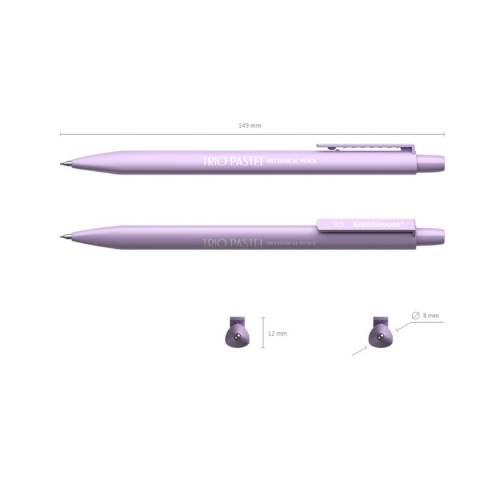Карандаш механический с ластиком ErichKrause "Trio Pastel", НВ, грифель d=0.5 мм, в коробке, микс