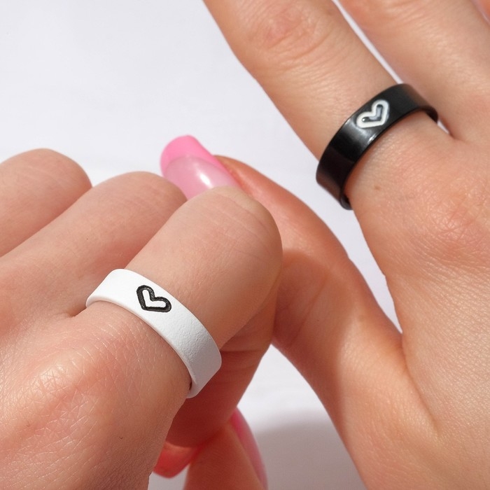 Набор колец 2 штуки «Неразлучники» сердца инь-ян, цвет чёрно-белый, размеры 17-18
