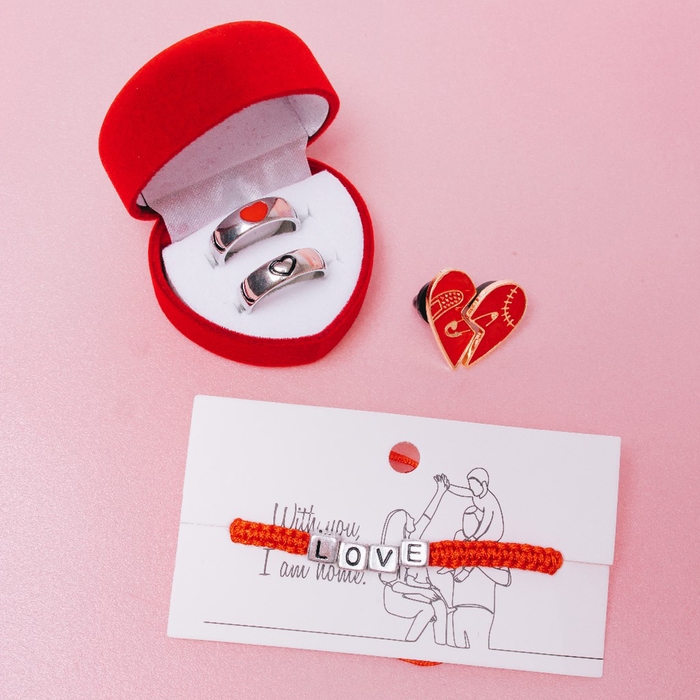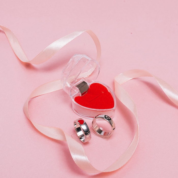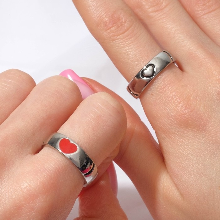 Набор колец 2 штуки «Неразлучники» сердца, цвет чёрно-красный в серебре, размер 17