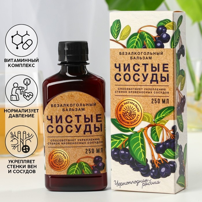 Бальзам для здоровья «Чистые сосуды» с черноплодной рябиной, 250 мл.
