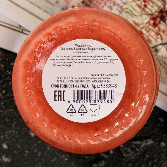Медовый мусс "Военному, Красивому, Здоровенному", с клубникой, 30 г