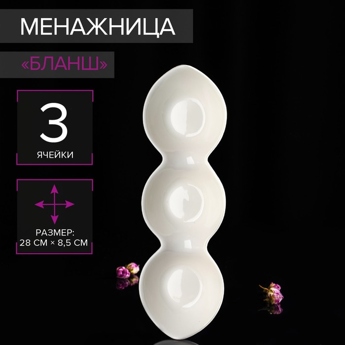 Менажница фарфоровая 3-х секционная Magistro «Бланш», 28×8,5×4,5 см, цвет белый