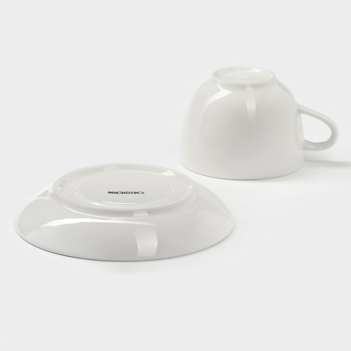 Чайная пара фарфоровая Magistro «Бланш», 2 предмета: чашка 280 мл, блюдце d=15 см, цвет белый