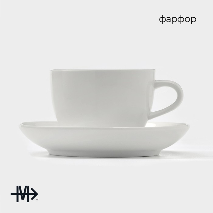 Чайная пара фарфоровая Magistro «Бланш», 2 предмета: чашка 300 мл, блюдце, цвет белый