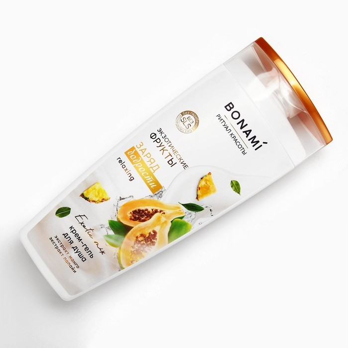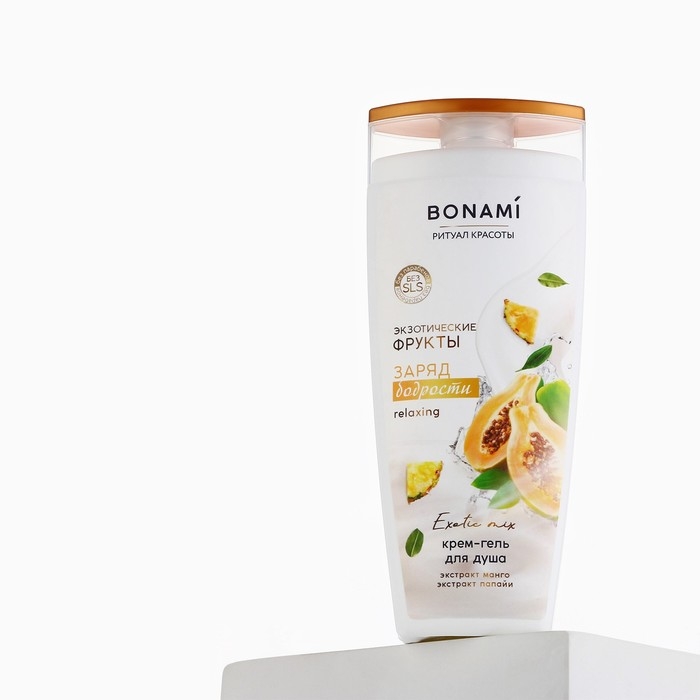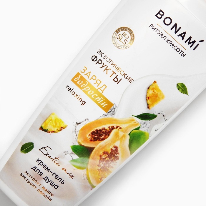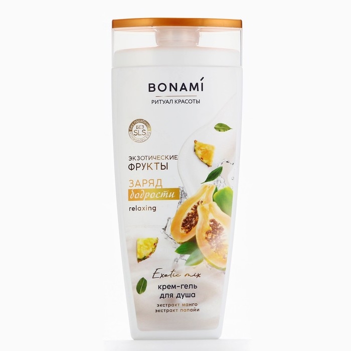 Гель для душа с экстрактом манго и папаий, заряд бодрости, 250 мл, аромат экзотических фруктов, BONAMI