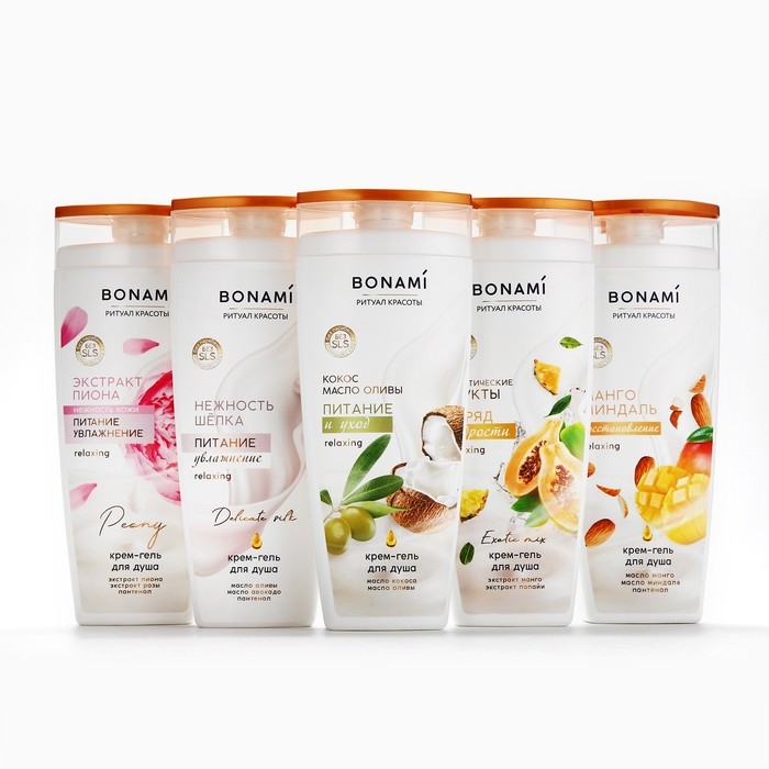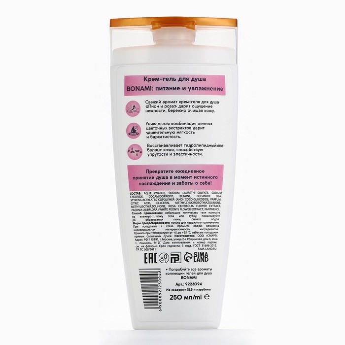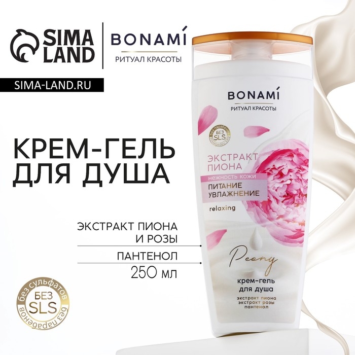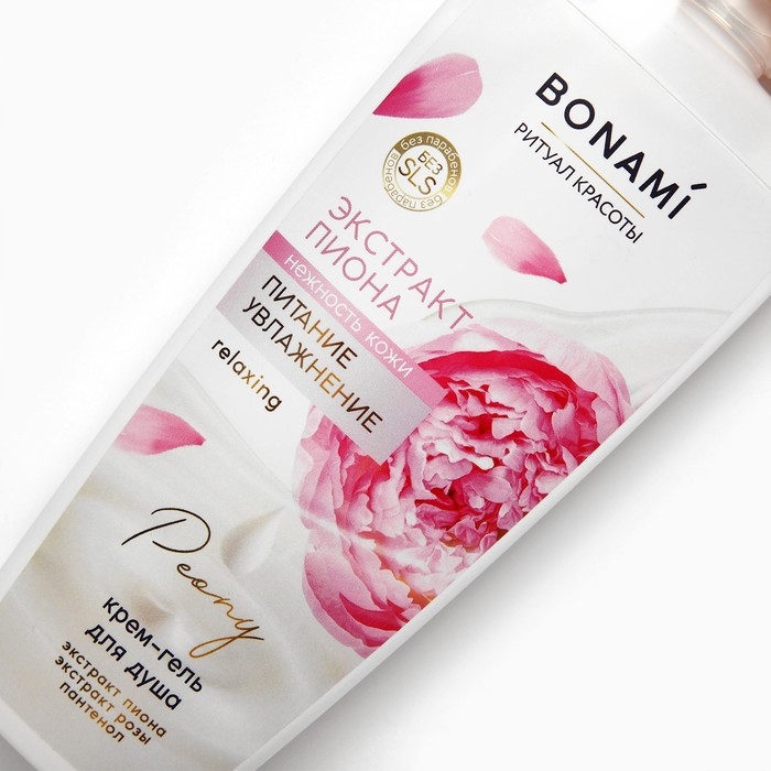 Гель для душа с пантенолом, увлажнение и питание, 250 мл, аромат пиона и розы, BONAMI