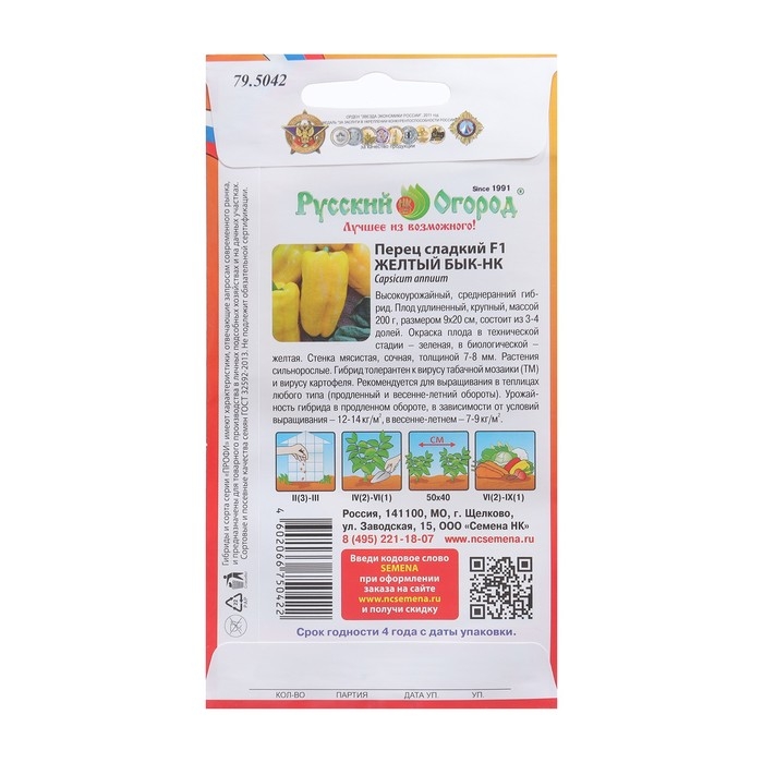 Семена Перец сладкий Желтый бык F1 НК 12 шт