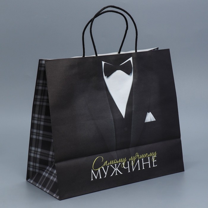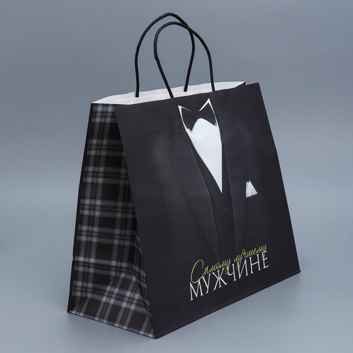 Пакет подарочный крафтовый, упаковка, «Лучшему мужчине», 32 х 28 х 15 см