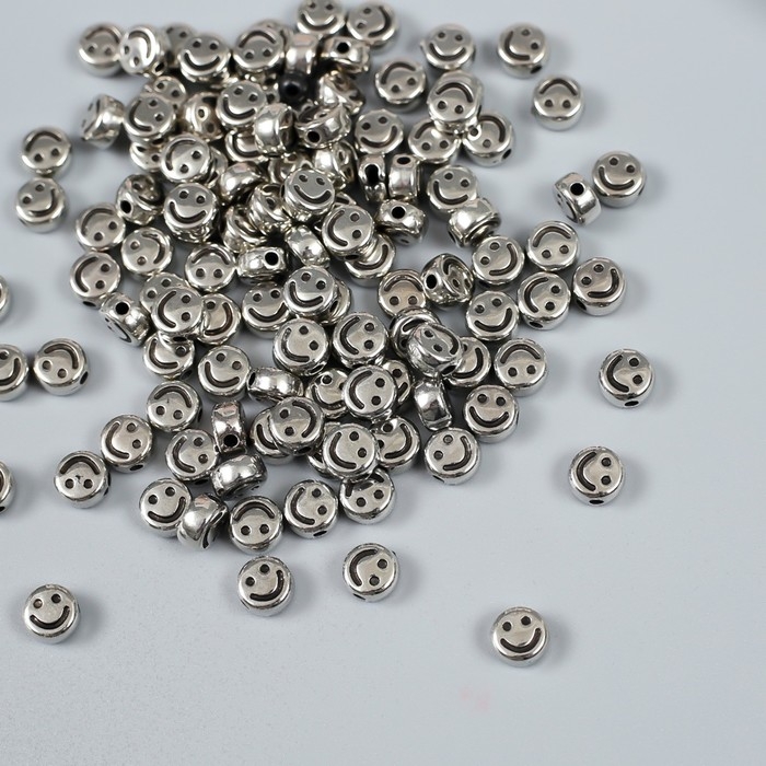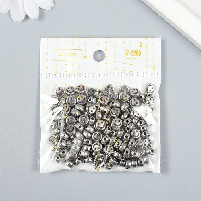 Бусины для творчества пластик "Смайлик. Плоский" серебро набор 20 гр 0,7х0,4 см