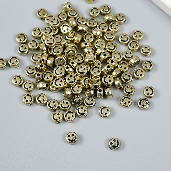 Бусины для творчества пластик "Смайлик. Плоский" золото набор 20 гр 0,7х0,4 см