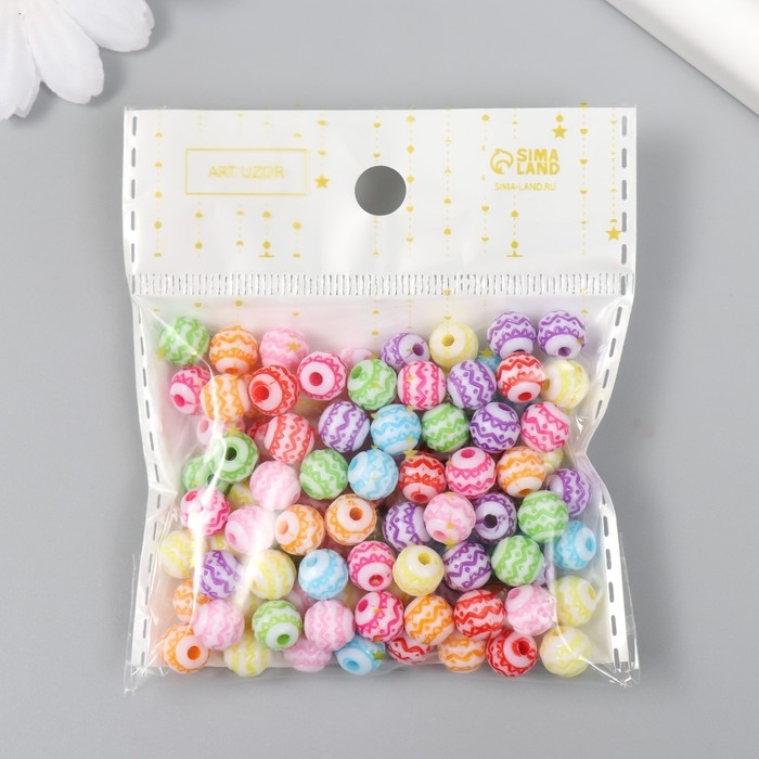 Бусины для творчества пластик "Этно рисунок" цветные набор 25 гр 0,8х0,8х0,8 см