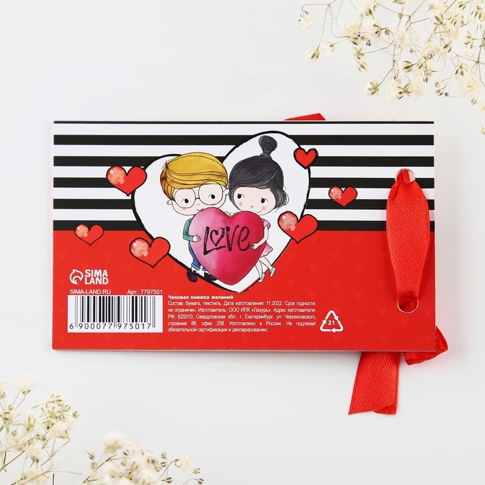 Чековая книжка желаний «Тому кого люблю», 10 х 6 см.