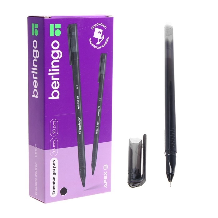 Ручка "пиши-стирай" гелевая Berlingo "Apex E", 0.5мм, трехгранная, стер/черный 265912
