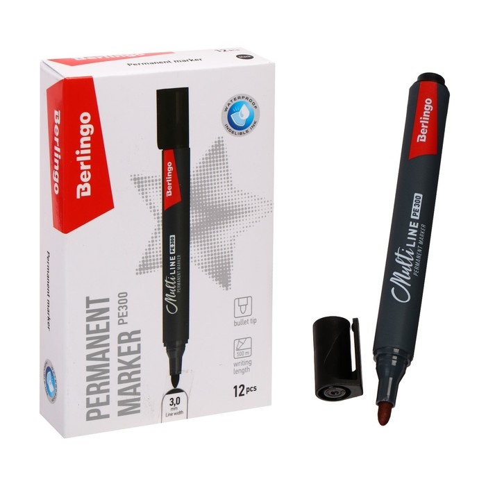 Маркер перманентный 3.0 мм Berlingo "Multiline PE300" черный, пулевидный