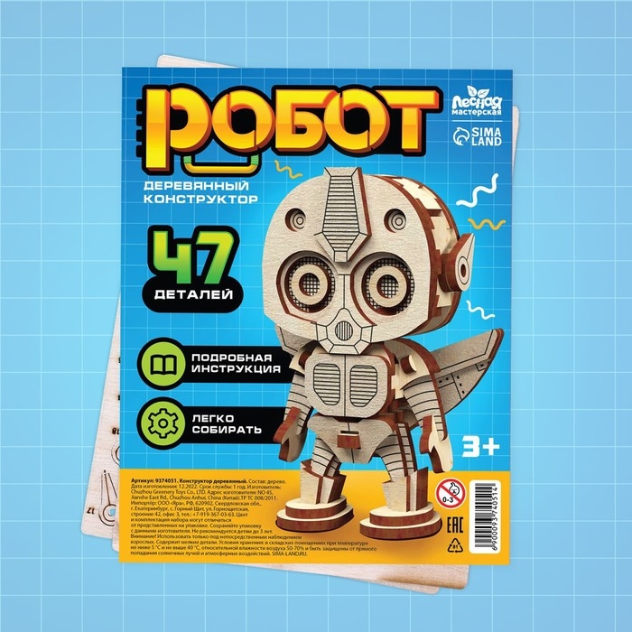 Конструктор деревянный «Робот», 47 деталей