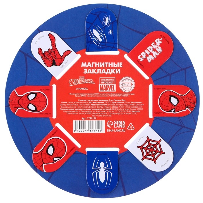 Открытка с магнитными закладками "Настоящему герою!", Человек-паук, 8 шт.