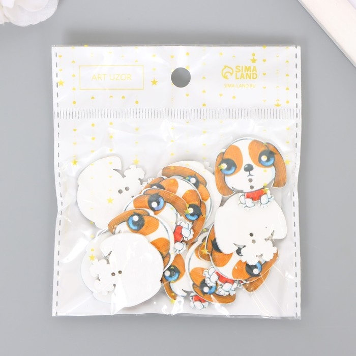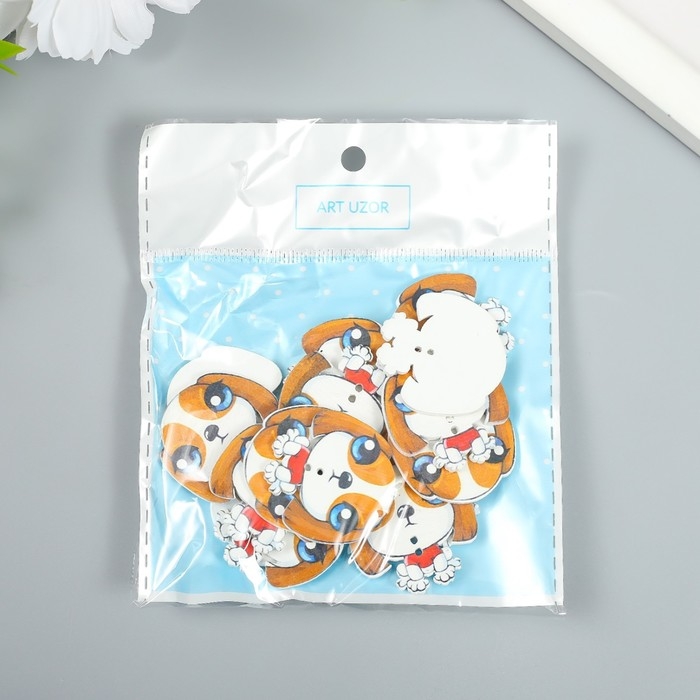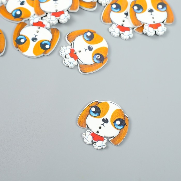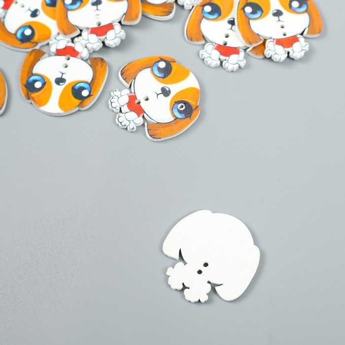 Пуговицы дерево для творчества 2 прокола "Щеночек" набор 15 шт 3х3 см