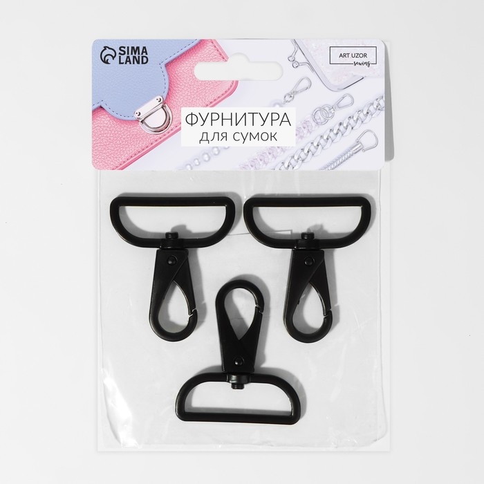 Карабин металлический, 52 × 45 мм / 38 × 3,5 мм, 3 шт, цвет матовый чёрный