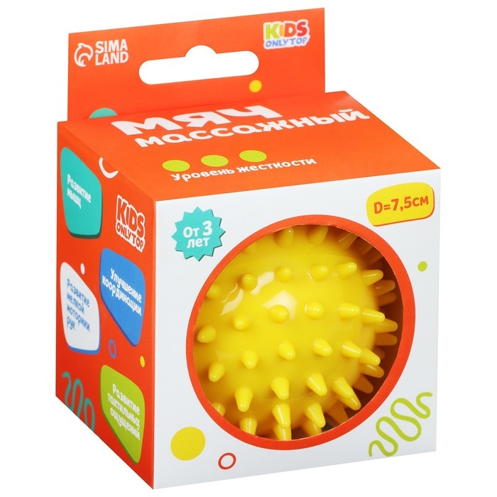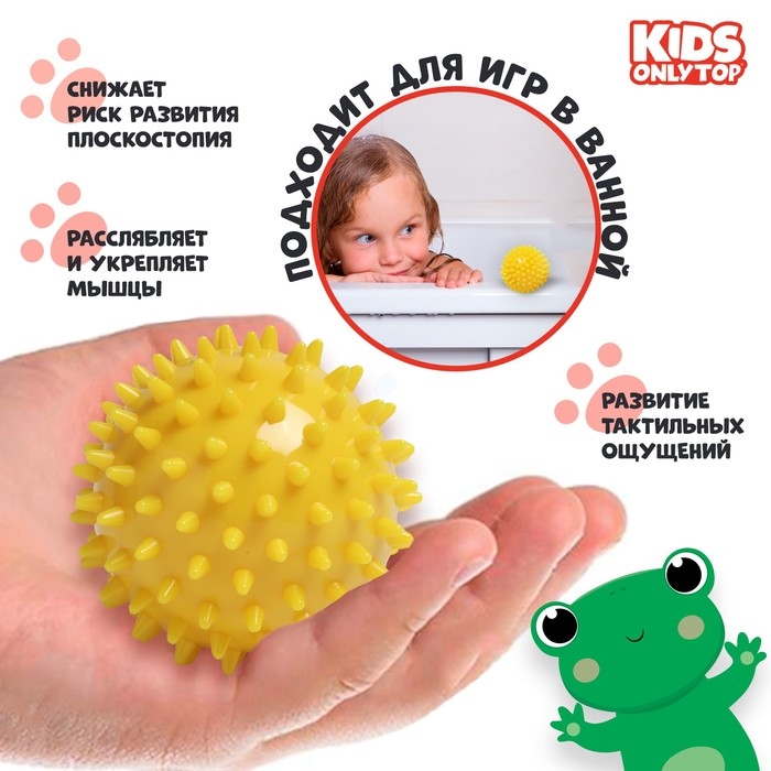 Мяч массажный ONLYTOP «Ёжик», d= 7,5 см, цвет жёлтый