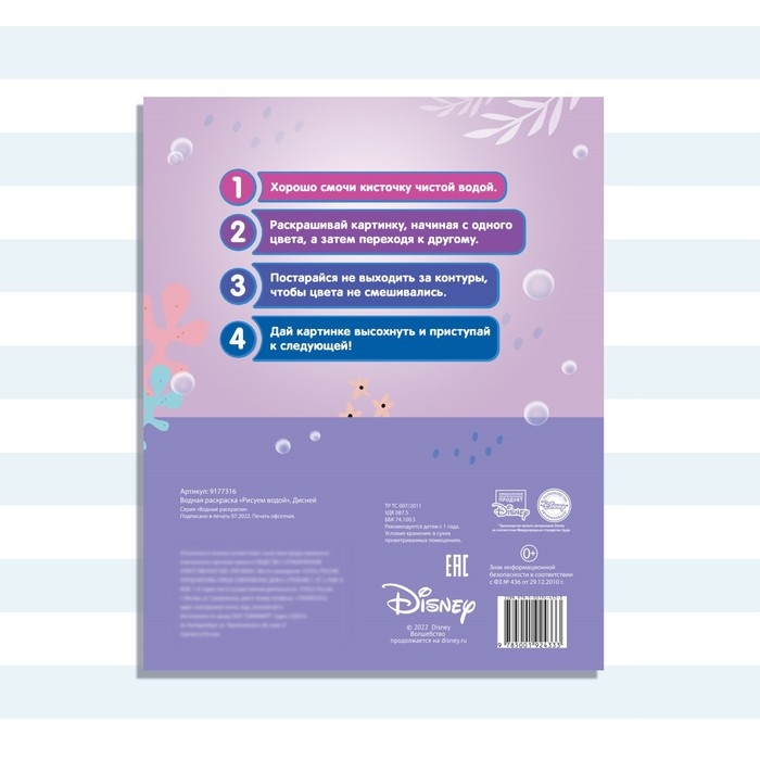 Водная раскраска «Рисуем водой», 12 стр., 20 × 25 см, Дисней