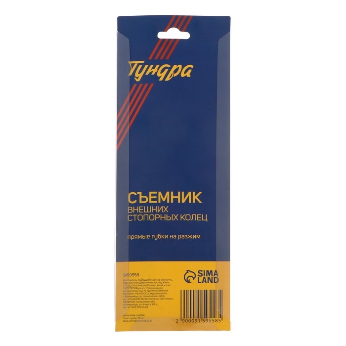 Съемник внешних стопорных колец ТУНДРА, прямые губки на разжим, 150 мм